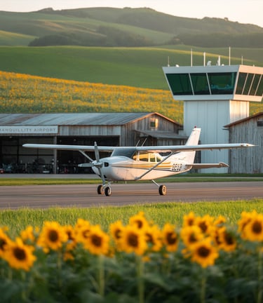 Private aviation facility with a 5,500-foot runway, hangar facilities, and full-service capabilities supporting executive travel, maintenance operations, and specialized logistics.